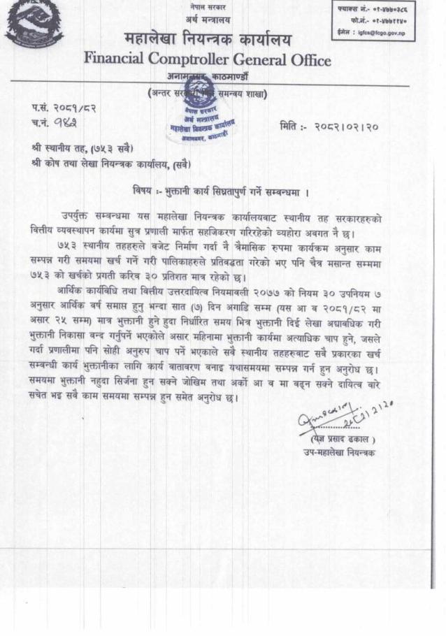 » चालू आ. व. २०८१/०८२ को भुक्तानी तथा खाता बन्द हुने सम्बन्धमा ।