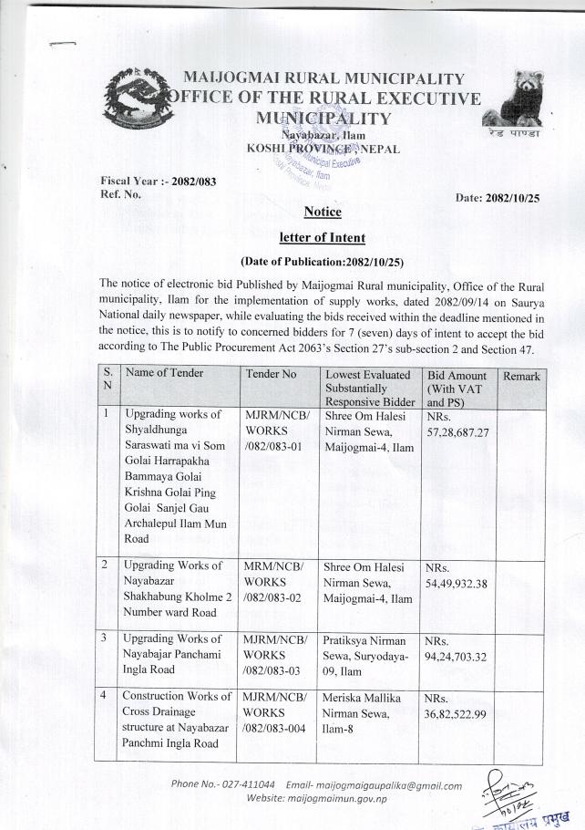 सार्वजनिक खरिद/बोलपत्र सूचना